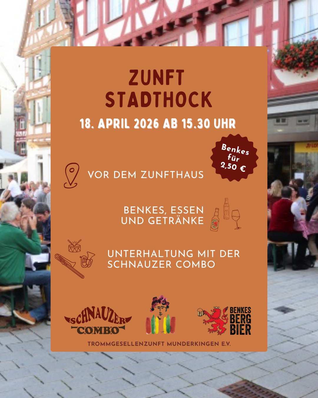 Am Samstag, den 18. April 2026 findet am 15.30 Uhr ein Zunft Stadthock vor unserem Zunfthaus in der Martinstraße statt. Wir freuen uns auf euch!