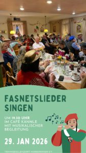 Am Donnerstag, 29. Januar 2026 findet unser diesjähriges Fasnetsliedersingen im Café Kännle statt.